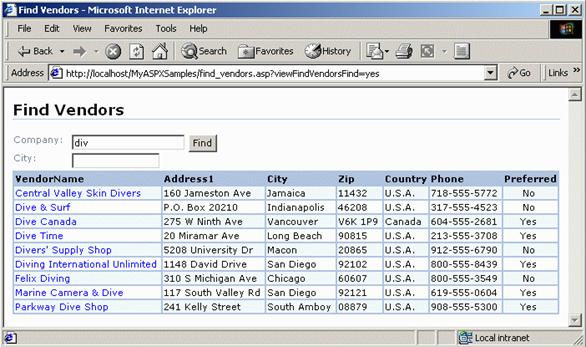 Deploy a new ASP script that invokes IPresentationServices.DisplayVendors