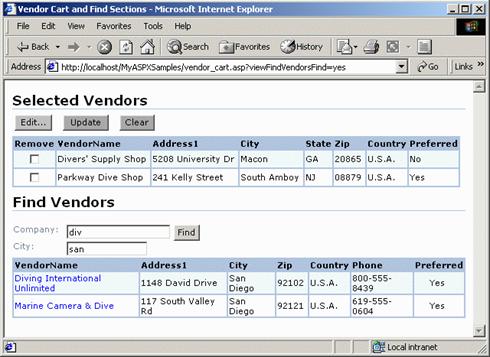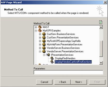 Create ASP script to test DisplayVendorCartAndFindSecitons using Page Wizard: