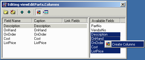 Setup viewVendorsSC.ToolBar.Buttons collection: