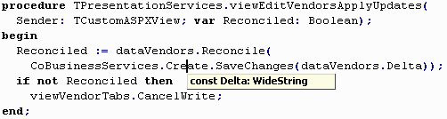 Create viewEditVendors.OnApplyUpdates event handler to send Delta