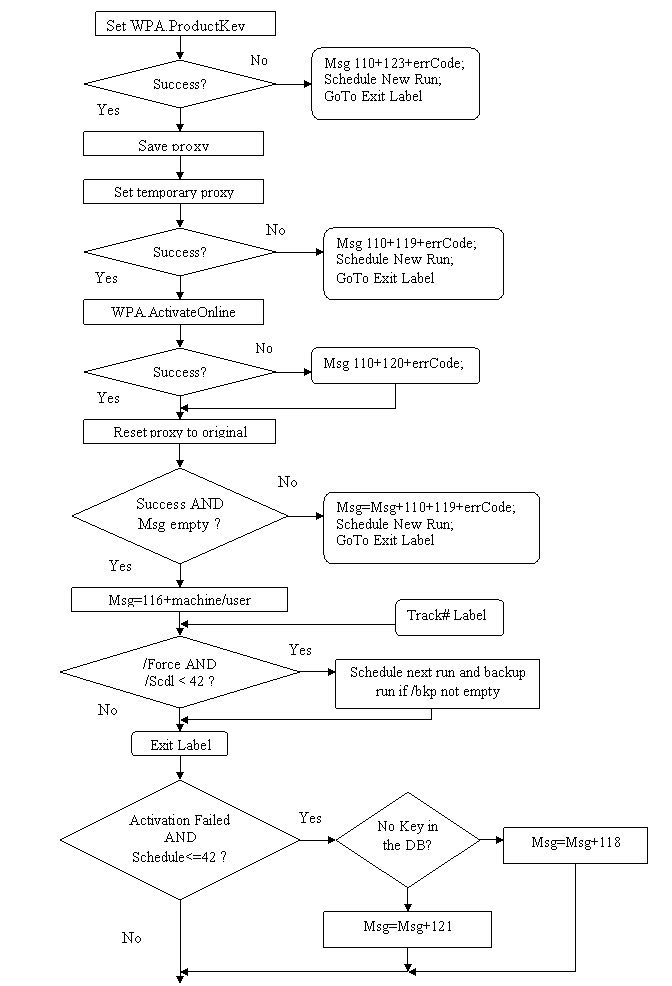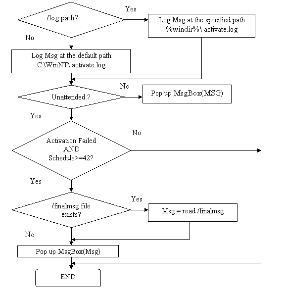 This will run the activation tool and force it to reschedule itself even if the activation is successful. A message box will pop up at the end of each run indicating the activation results. After the last run the message box will pop up with the message #118 or #121. The log file with the results of each run will be saved in C:\WINNT\activate.log file.