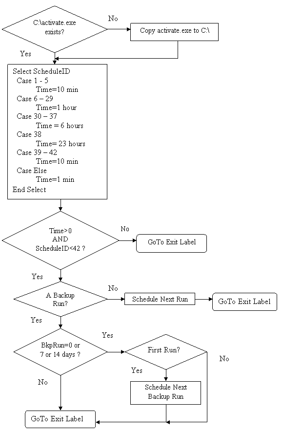 If the activation fails on the first run it copies itself locally to C:\activate.exe and reschedules the next run according to the schedule (see the scheduling logic).