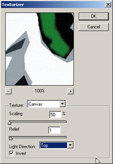 We are going to apply a canvas grain effect to our picture, so it's going to look like a print from a canvas original...which I happen to like the look of. This step is optional, you may not like it. I think you should try though, to see what it turns out like.