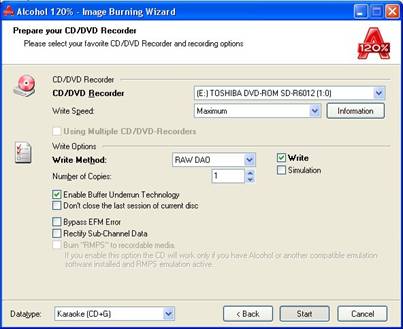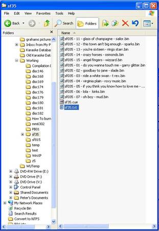 Ensure all files required on the new disc are in pairs (01_example.cdg + 01_example.mp3) and COPIED into a separate folder