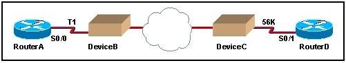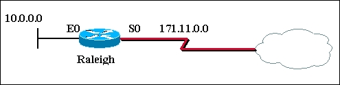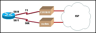 An ISDN router is configured for DDR as shown in the graphic to provide