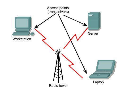 A wireless network can be created with much less cabling than other networks. The only permanent cabling might be to the access points for the network. At the core of wireless communication are devices called transmitters and receivers. The transmitter converts source data to electromagnetic (EM) waves that are passed to the receiver. The receiver then converts these electromagnetic waves back into data for the destination. The two most common wireless technologies used for networking are infrared (IR) and radio frequency (RF).