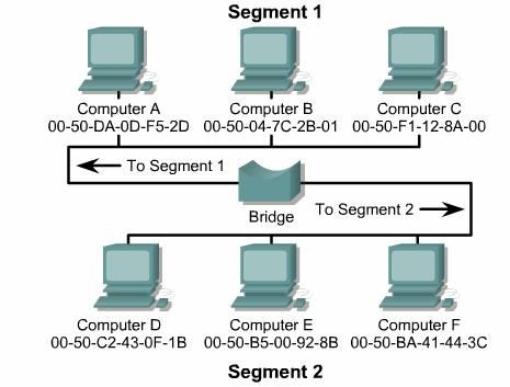 A bridge uses the destination MAC address to determine whether to filter, flood, or copy the frame onto another segment. If placed strategically, a bridge can greatly improve network performance.