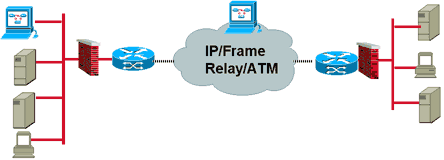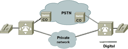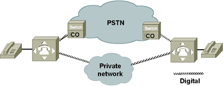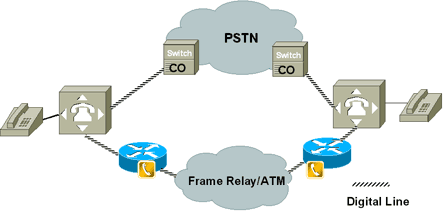 Typically the configuration relies on co-existence in the initial phases. Savings are incurred by the reduction of trunk lines to the CO. The connection between the PBX and the router would normally be E&M and the router will transport voice over the existing WAN protocol which may be Frame Relay or ATM.