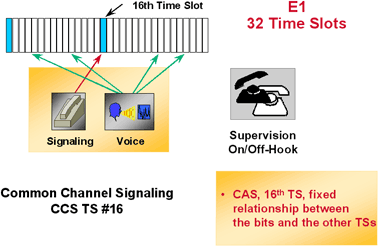 While E-1 uses time slot 16 for signaling, CCS uses slot 24 and CAS uses robbed bit signaling.