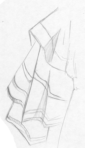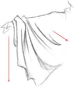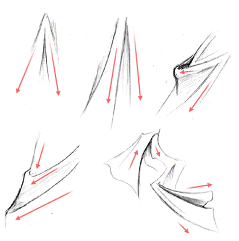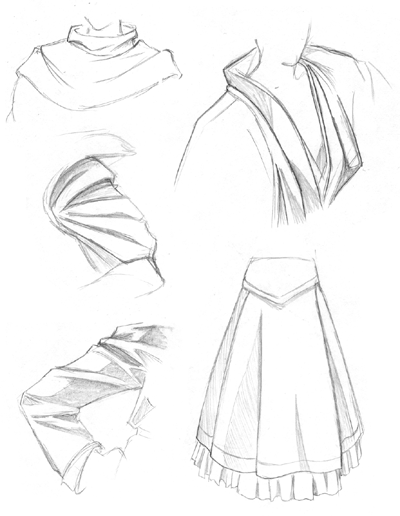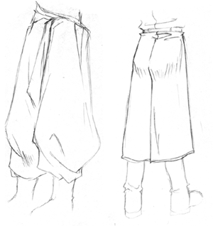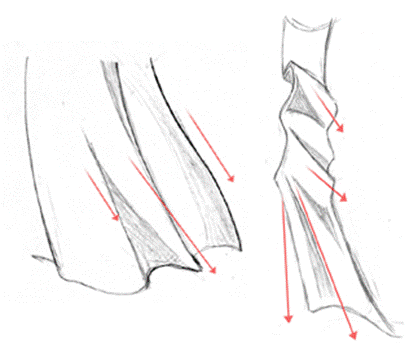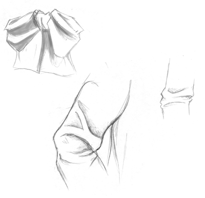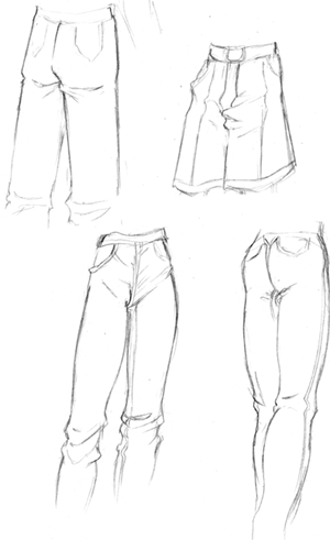 gender you are drawing, the fabric will gather around the lower waist, knees,