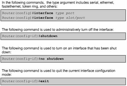 By default, interfaces are turned off, or disabled. To turn on or enable an interface, the command no shutdown is entered. If an interface needs to be administratively disabled for maintenance or troubleshooting, the shutdown command used to turn off the interface.