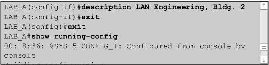 To verify changes, use the show running-config command. This command will display the current configuration. If the variables displayed are not correct, the environment can be changed in the following ways:
