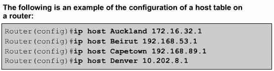 In order to use host names to communicate with other IP devices, network devices such as routers must be able to associate the host names with IP addresses. A list of host names and their associated IP addresses is called a host table.
