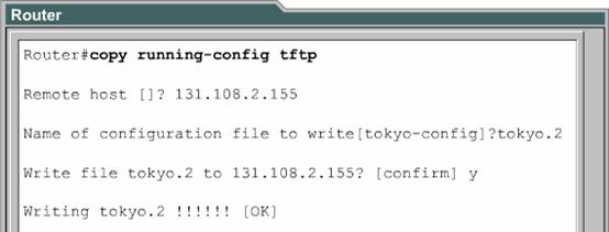 Configuration backup can be stored on a TFTP server, on a network server, or on a disk. A specific backup plan will ensure that the files are available if a problem occurs.