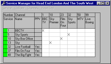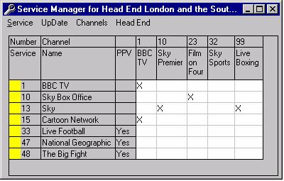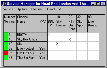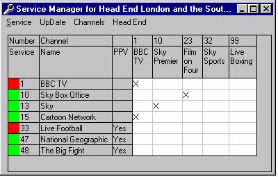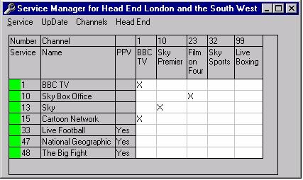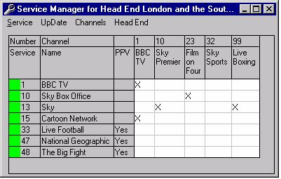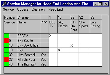 If the Operator selects a Head end and presses the "OK" button then the Service Manager Window appears