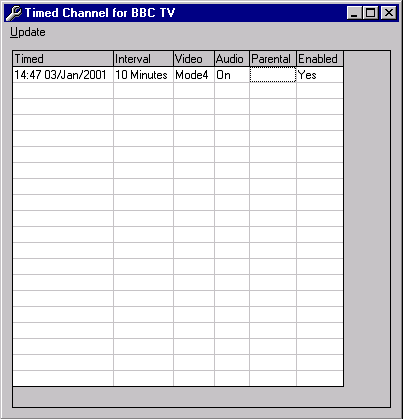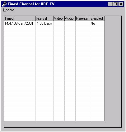 To configure a Timed Channel event for the Channel you have selected double click anywhere on the first row