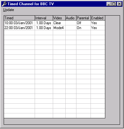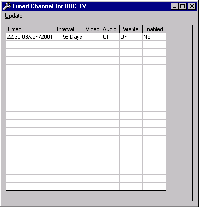 The Update Menu item is used to update the Timed Channel Event to the ACS Update Manager and passed on to the Event Manager held within the System Scheduler