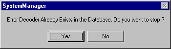 If the operator presses the "No" button then the Serial Number in the import file is ignored and the process continues to the next Decoder Serial Number in the imported .dec File.