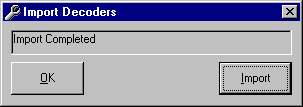 If the Serial number of the decoder being imported is already in the Decoder Database then an error message appears
