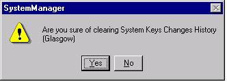 The operator is able to clear the Log File of the System Keys Changes History using the "Clear Log File" button when pressed the following Window appears