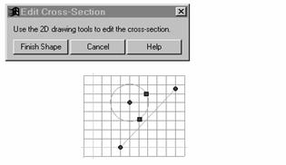 When you complete a 2D cross-section and extend it into 3D, you can view and revise some of its characteristics with the Cross-Section property sheet.