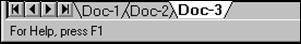 To quickly see how many scenes and pages are in your WorkBook, check the Doc tabs at the bottom of the TriSpectives window. In the following illustration, for example, the WorkBook has three documents. The active document is the third one.