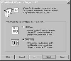 3 On the WorkBook Wizard dialog box, choose 3D Scene.