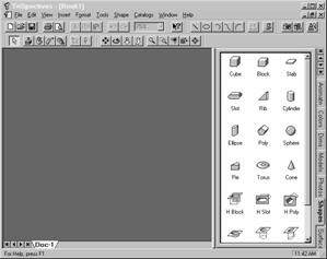 Shapes. This catalog contains IntelliShapes, the building blocks for TriSpectives models. Some IntelliShapes are basic 3D solids such as cubes and spheres. Some are holes for removing parts of solids. For more on IntelliShapes, see the next chapter.