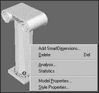 The pop-up menus contain commands for the particular item you select. Here's the menu you see when you right-click a model: