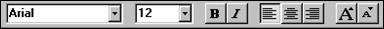 The Text tools, from left to right, let you select a special typeface and typeface size for the selected text, display text in boldface type or italics, and align text along the left, center, and right margins of the text box. Use the last two tools to increase or decrease the size of selected text.