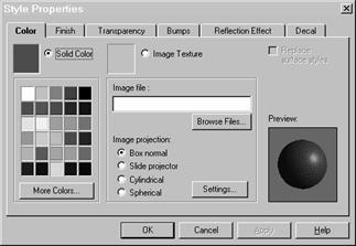 The property sheet for the object appears. For example, the following property sheet appears when you right-click a model and select Style Properties from the pop-up menu.