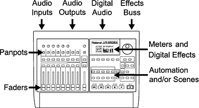 HDRs with digital mixers typically have additional inputs for keyboards, sound modules, or an outboard mixer. These inputs can be mixed with your recorded tracks for the final digital mix.