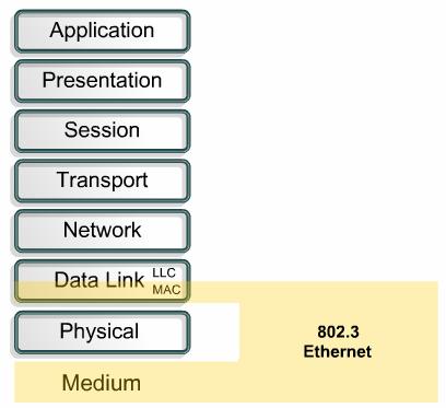 In 1985, the IEEE standards committee for Local and Metropolitan Networks published standards for LANs. These standards start with the number 802. The standard for Ethernet is 802.3. The IEEE wanted to make sure that its standards were compatible with the International Standards Organization (ISO) and OSI model. To do this, the IEEE 802.3 standard had to address the needs of Layer 1 and the lower portion of Layer 2 of the OSI model. As a result, some small modifications to the original Ethernet standard were made in 802.3.