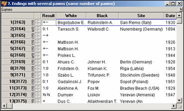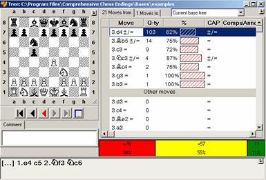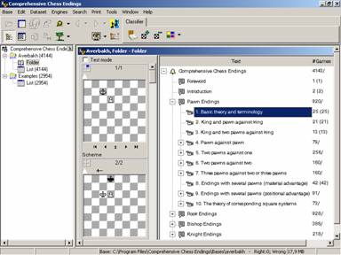 Therefore, there are two possible approaches: every database may be considered either as a set of games or as a tree, i. e. a set of positions connected by different paths. Comprehensive Chess Endings offers you good tools for operating the chess trees.