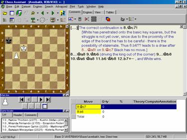 Comprehensive Chess Endings is an abridged version of Chess Assistant 7, powerful chess database management system. This lets you perform different searches, add your own comments, print games, analyze with different playing engines, etc. The abridged version, however, has some restrictions, almost all of which are listed in Section 2.5 Quick Guide for Chess Assistant Users.