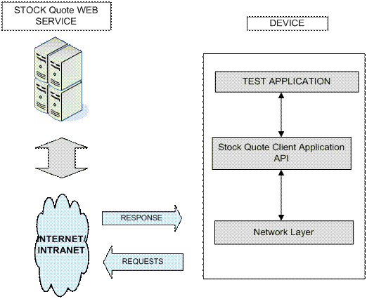 Let's take the case that you are developing a device application that gathers stock quotes from a server and displays them on the device. Your application is typically composed of a set of core APIS (call them Client Application API) that gather the stock quote from a server and a UI framework that renders the stock quote information on the device. The Client Application API would either use the networking layer directly through sockets or indirectly (via WININET or .NET CF libraries) to talk to the stock quote web server on the internet.