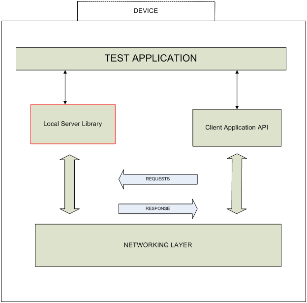 The fake server framework can be used by developers to write custom server applications that run on the device itself. These applications are very simple to write using the fake server library (as we can see you can write your own in less than 10 lines of code!). Before we go ahead with the design details lets have a look at a high level architecture.