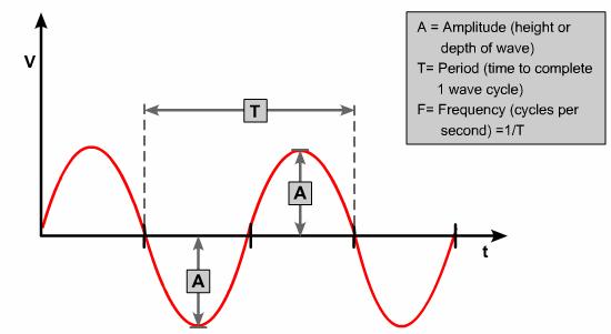 Networking professionals are specifically interested in voltage waves on copper media, light waves in optical fiber, and alternating electric and magnetic fields called electromagnetic waves. The amplitude of an electrical signal still represents height, 555b16f but it is measured in volts (V) instead of meters (m). The period is the amount of time that it takes to complete 1 cycle. This is measured in seconds. The frequency is the number of complete cycles per second. This is measured in Hz.