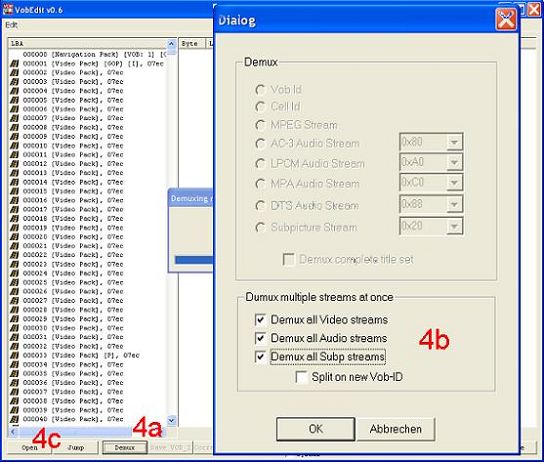 Figure 4. VobEdit is used to demultiplex the DVD's VOB (Video Object)
