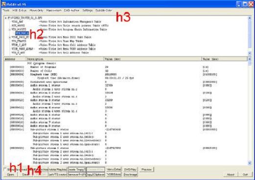 new IFO: open the original IFO (see Figure 6, h1), select VTS_PGC_1 (h2), and