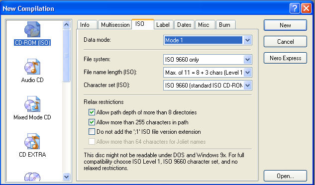 D) Character set: ISO 9660 (Standard ISO CD-ROM)