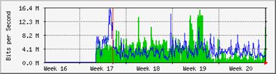 In order to monitor the use of each LAN and the bandwidth utilization of each internet connections of ICU network, we monitor the input output of all connections from Main router by using MRTG version 2.10.13. All the results are showed at the address https://mrtg.icu.ac.kr:8080.