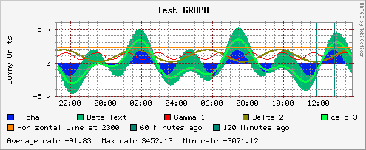The graphing part of the RRD Tool also has some built-in analysis capability. It can calculate the maximum, minimum and average values from any data source. For more complex requirements, it is possible to use RPN math on any number of data sources and then graph the result. Figure 4 shows a sample graph demonstrating some of the capabilities of the RRD Tool.