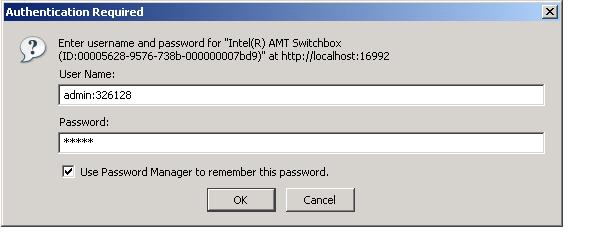Enter the AMT ID in the username field prompted for the Switchbox login as follows: