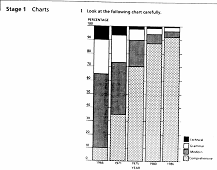 Task 1: Comment on the percentage of p 20420e418u upils at secondary modern schools in 1966. Base your comment on the information contained in Chart 1. Write in a similar way to the comment above. Draw attention to what is significant.