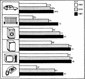 Diagram 1: Percentage of households with certain durable goods (G.B.)