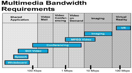 in the transmission of large graphic files, images, full-motion video and