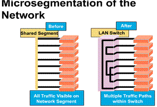 the LAN. A switch segments a LAN into microsegments creating collision free