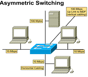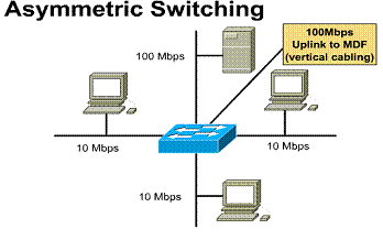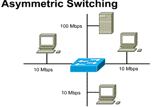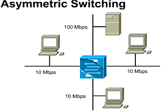 An asymmetric LAN switch provides switched connections between ports of unlike bandwidth, such as a combination of 10 Mbps and 100 Mbps ports. This type of switching is also called 10/100 switching.