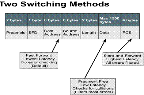 As a frame enters a switch it is read for the source and/or destination address. The switch then determines which switching action will take place based on what the switch has learned from the information read off the frame. The frame is then switched to its destination.